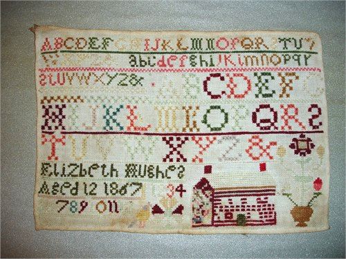 I know very little about my Great Grandmother – her name was Elizabeth, she was born in 1855 in Wales. When she was 12 she made this sampler: