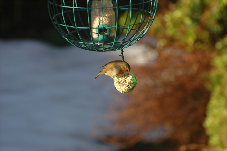 Thanks for your comments – I can’t take the credit for this photo – my husband took it, and yes TexasRed this is in our garden. It’s most unusual to see a robin on the fatballs, but this one had no trouble balancing there.