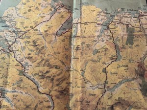 Standing in Another Man’s Grave by Ian Rankin. Both the endpapers in my hardback copy of the book are copies of OS maps of the area, showing the route along the A9 in Scotland that Rebus took whilst investing a cold case as a retired police officer.