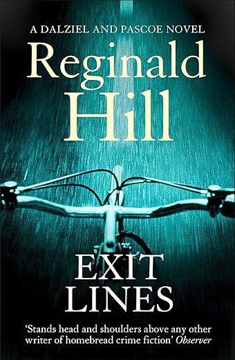 E is for Exit Lines by Reginald Hill, a Dalziel and Pascoe crime novel. There are three deaths in one night. All three victims were elderly and died violently and a drunken Dalziel is a suspect in one, as it seems he was driving the car that hit an elderly cyclist. The third victim was found dying, having fallen whilst crossing the recreation ground. The plot is intricate, with the separate cases all linked in one way or another.