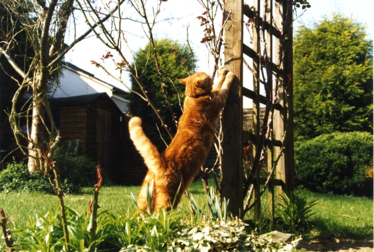 There were actually three mice climbing all over and round the back of the loaf nibbling it. I wasn’t the only one interested. Lucy came to the patio door and wanted to go out for a closer look.