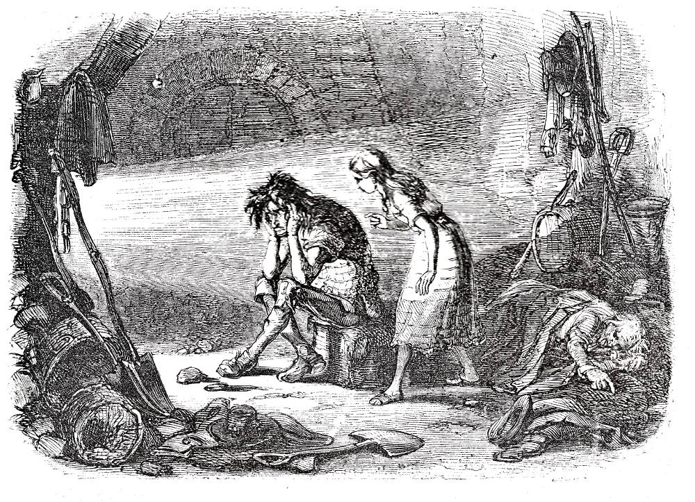 Other characters who stood out are Dick Swiveller and the Marchioness. Dick at first appears as a profligate friend of Nell’s brother, Fred but takes on a larger role later in the book. Working in a law office for Mr Brass and his sister, Sally Brass, he befriends the small, half-starved girl who is a servant locked in the basement, calling her the Marchioness. He rescues her and also Kit, Nell’s friend, when he is wrongly accused of robbery.