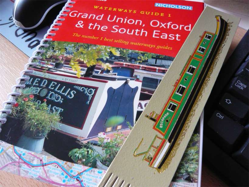 My background reading before the boat trip was from the excellent Waterways Guide 1 – Grand Union, Oxford & the South East published by Collins/Nicholson new edition 2009. And my souvenir from the marina shop is a leather bookmark.