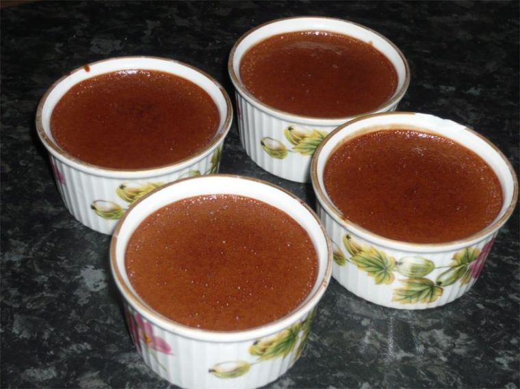 Nigella writes – “Crush the chocolate to smithereens in a food processor ” – this is a satisfying if noisy process. Then you heat the milk and cream add the vanilla and allspice to the chocolate and wait 30 seconds then whizz up for 30 seconds, add the egg and process again for 45 seconds. Pour into little pots (Nigella says it makes 8 little pots of approximately 60ml, but I used 4!) and refrigerate for 6 hours or overnight. Take them out about 20 minutes before eating.